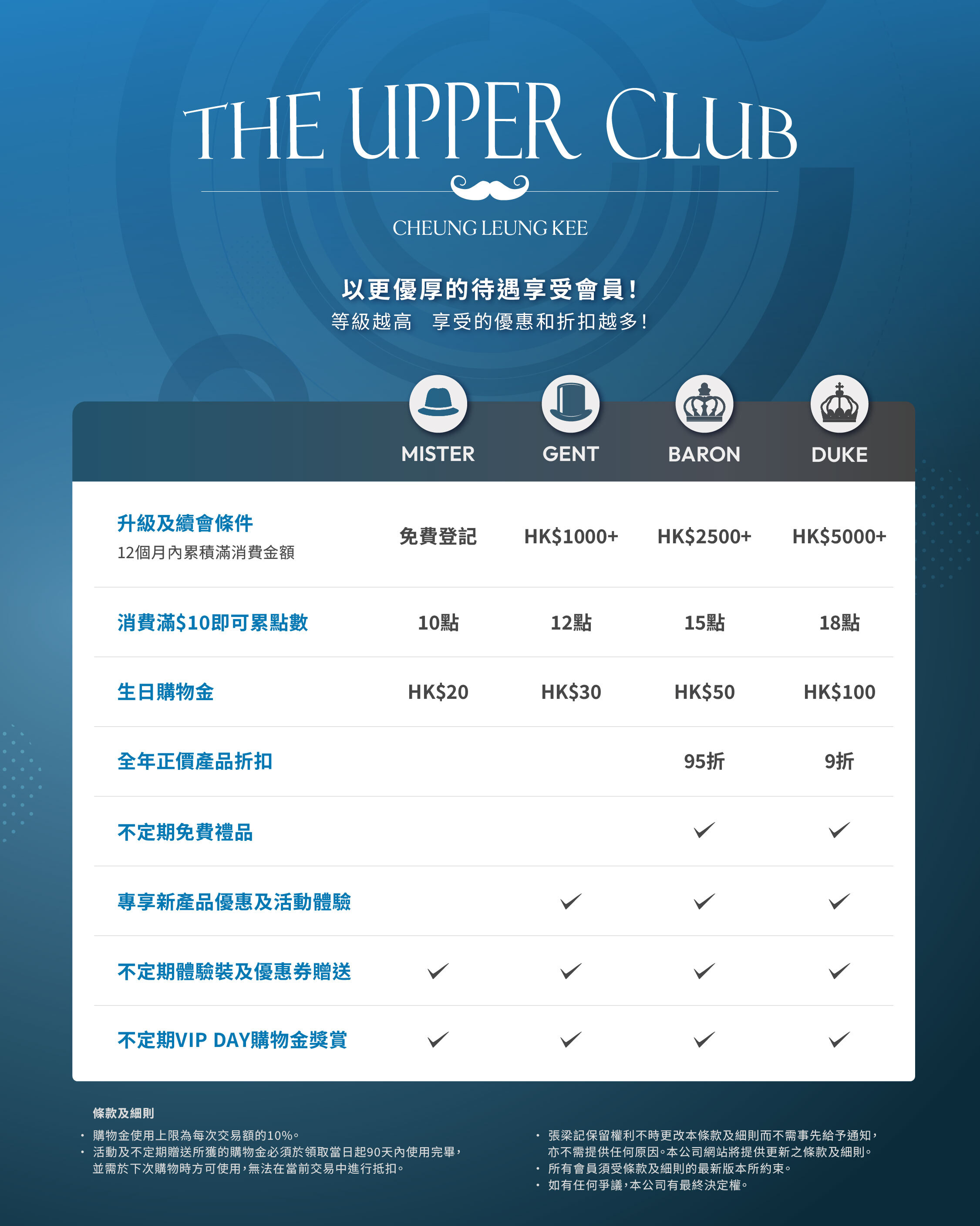 It's our greatest honour and pleasure to welcome you to the new loyalty programme of Cheung Leung Kee . Sign up as our valued member to enjoy exclusive rewards and VVIP experience.
