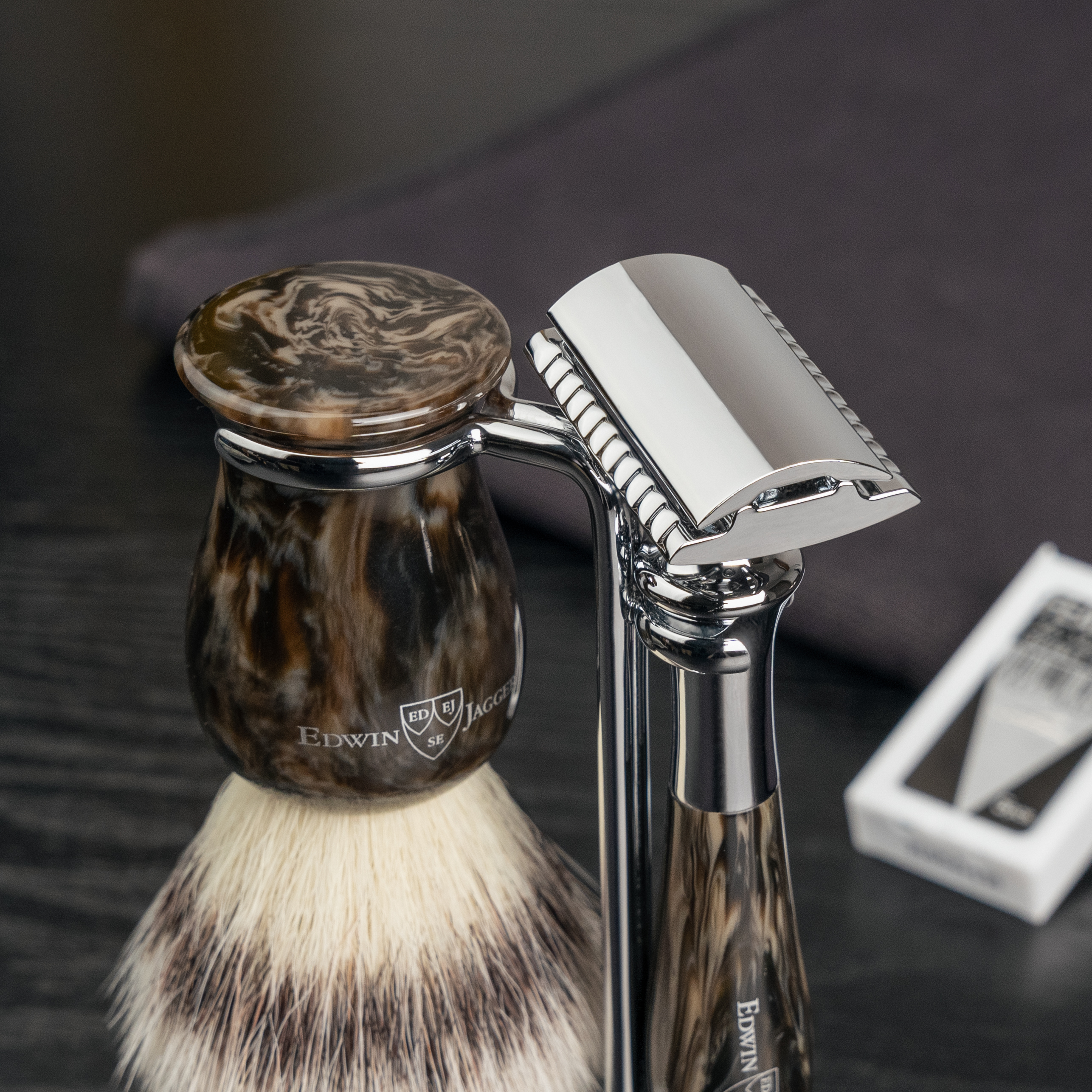 Edwin Jagger 黑雲石紋設計 3件傳統剃鬚套裝禮盒