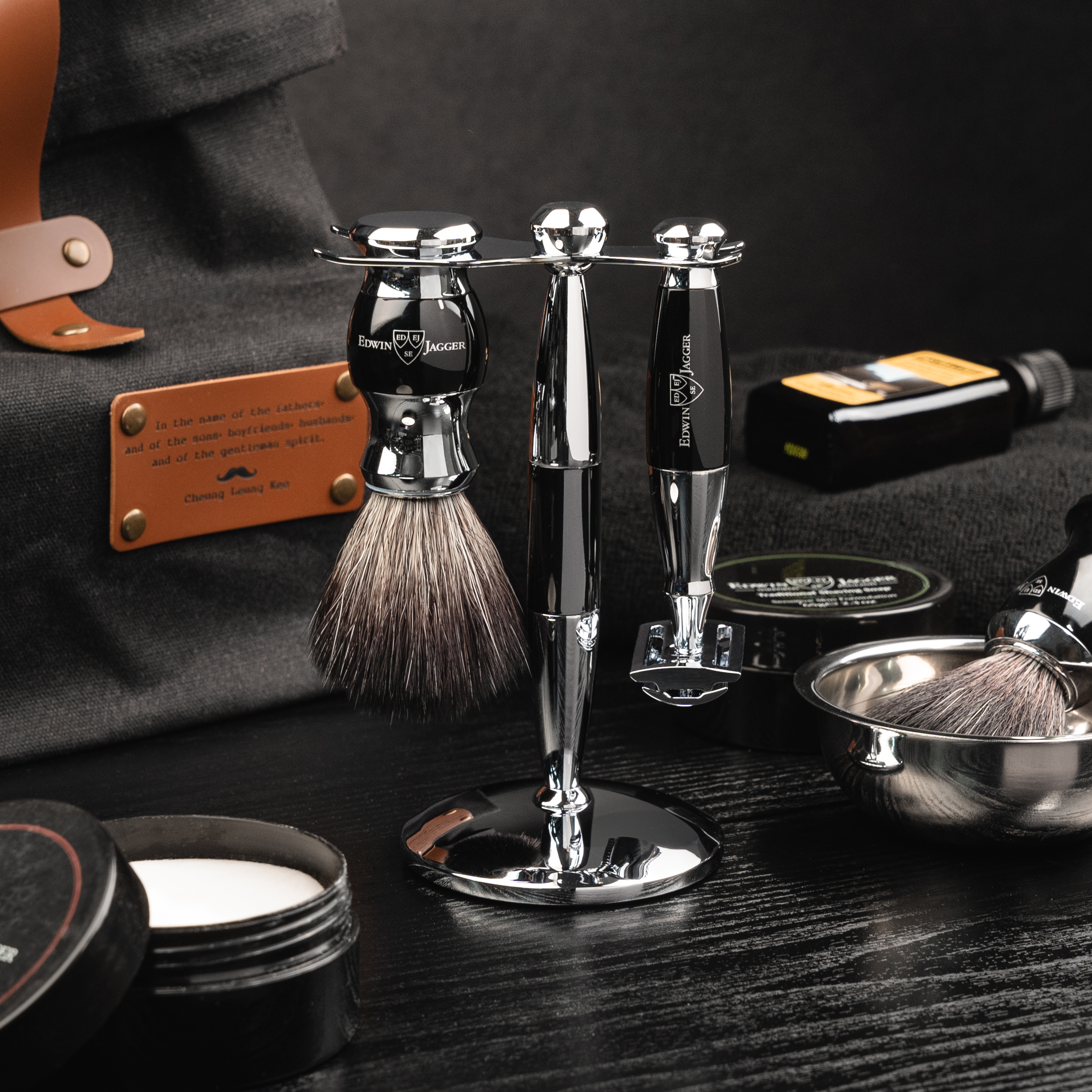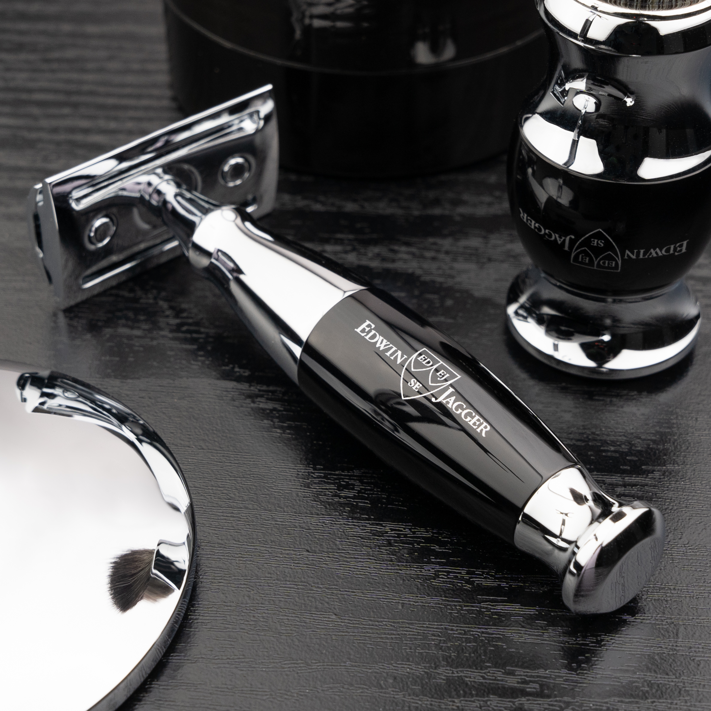 Edwin Jagger 黑色電鍍設計 3件傳統剃鬚套裝禮盒