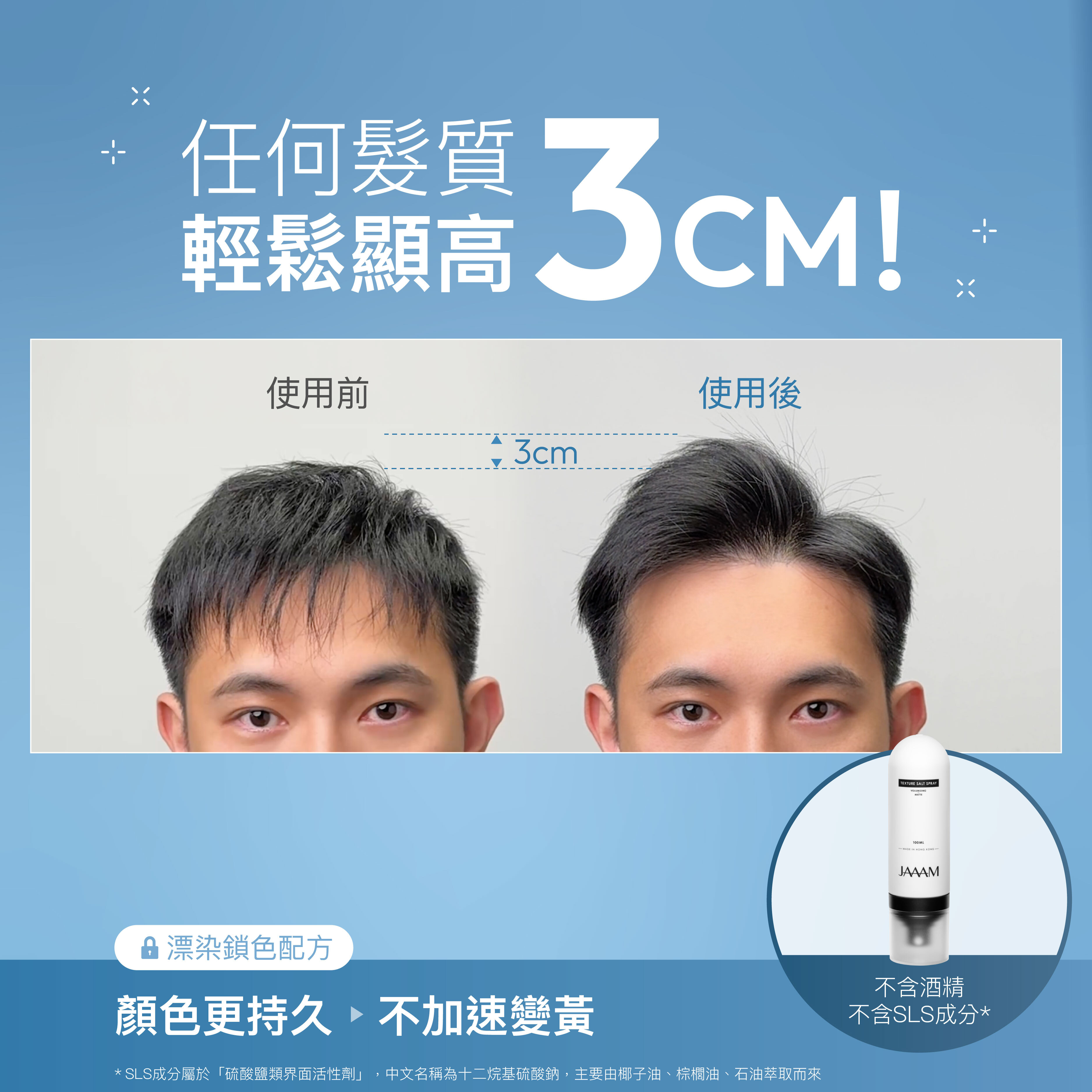 強力且快速的定型效果,有效對抗濕氣與風吹,長時間維持髮型立體度與線條,且不泛白、不外硬內軟。