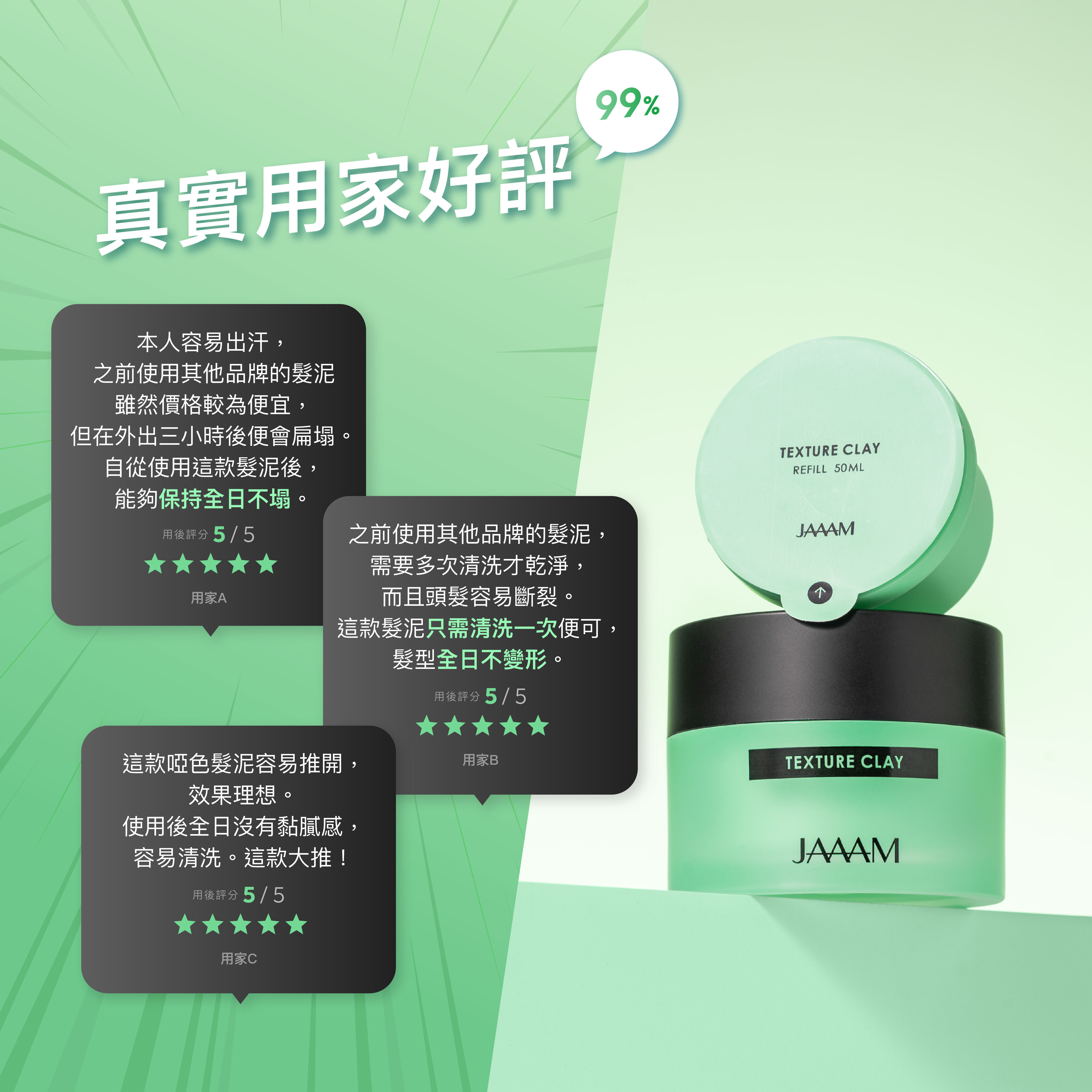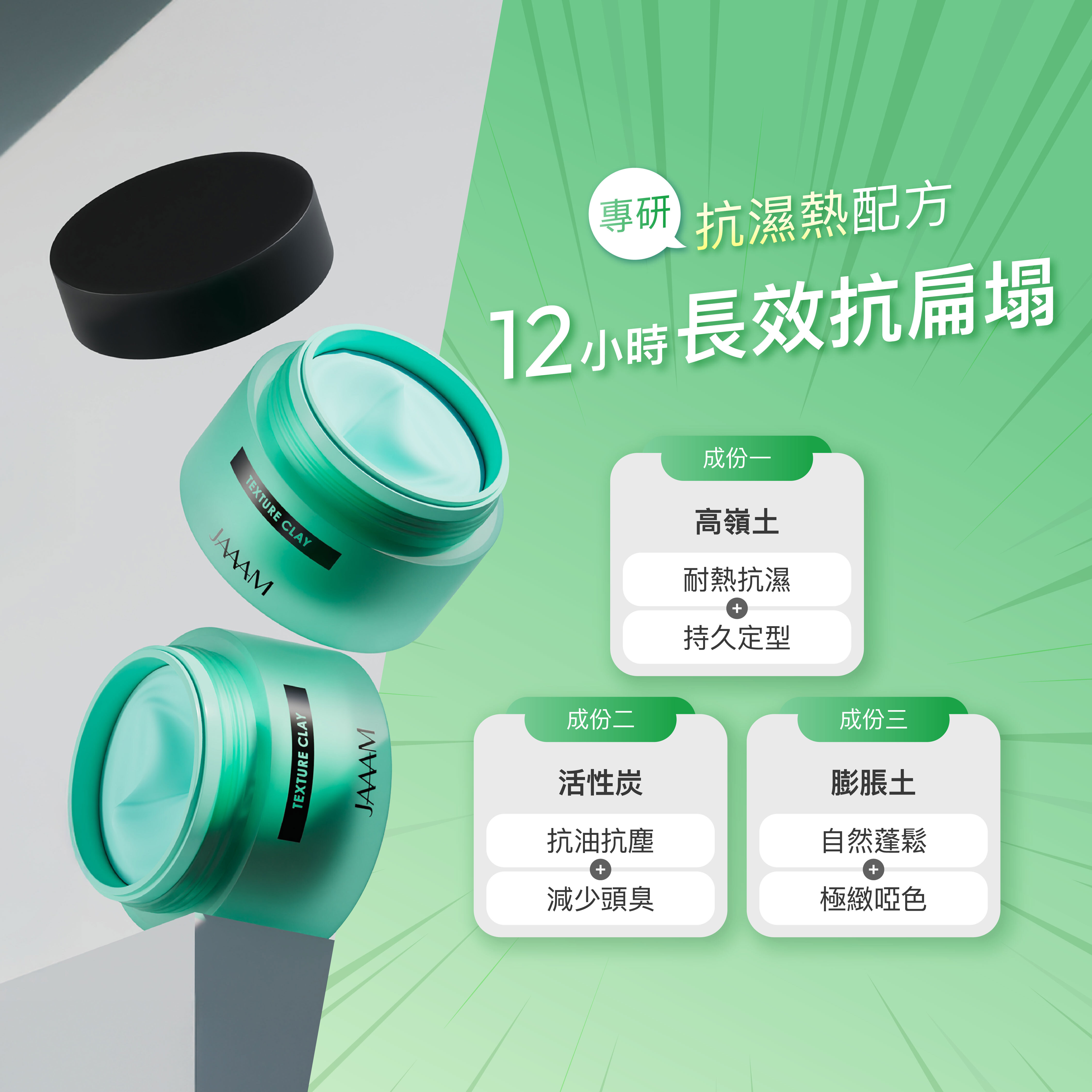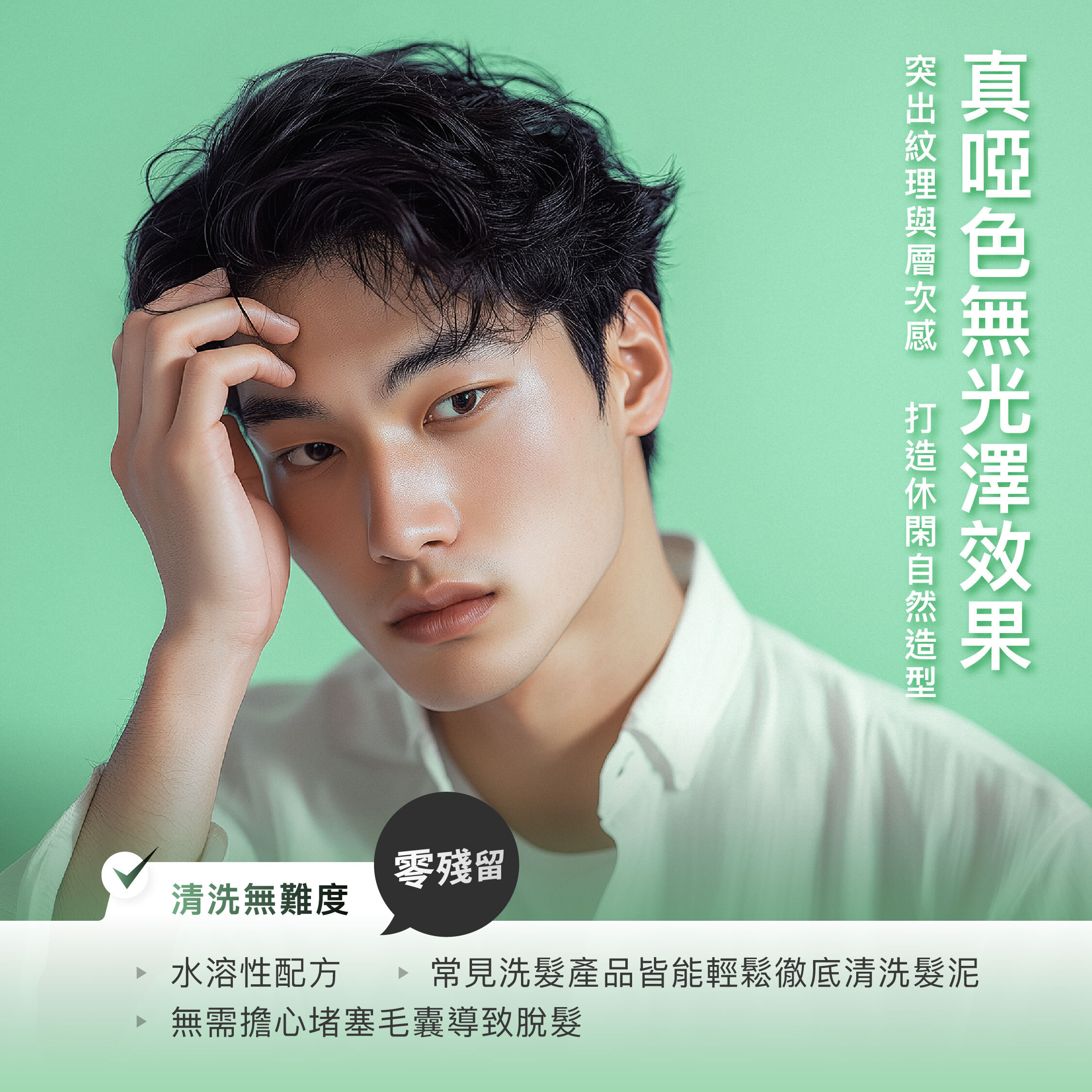 速乾啞色髮泥: 打造蓬鬆、紋理分明且零油光的自然幹練造型。