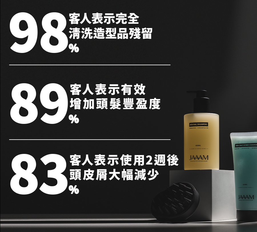 - 針對市面上大部份頭髮造型產品研發可以100%洗淨的配方,確保不需要擔心造型後會出現洗不乾淨的情況,保護頭髮及頭皮的清潔程度,減少毛囊堵塞引致脫髮機會。