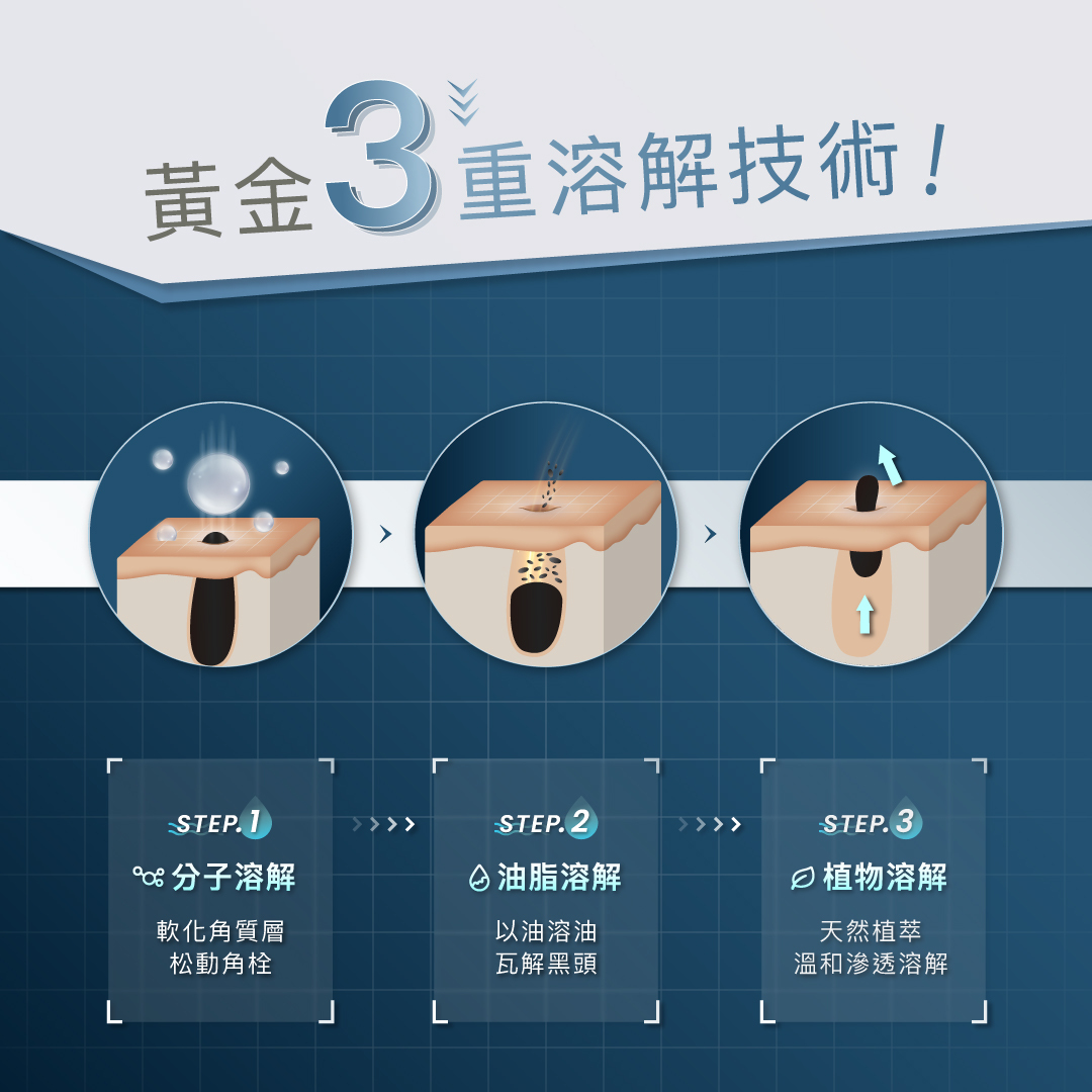▸ 黄金三重溶解配方 輕鬆溶解頑固黑頭