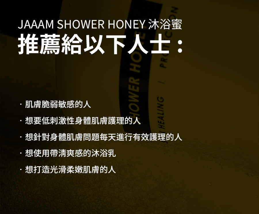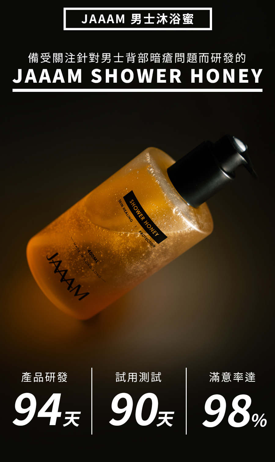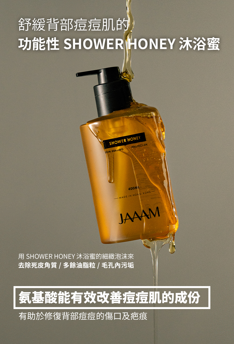 JAAAM沐浴蜜獨有的古龍水香氛,不僅讓你沐浴後持久留香,還能有效去除體味,讓你全天候保持清新。立即購買JAAAM沐浴蜜,為你的皮膚帶來全方位的護理,從根本上解決背部痘痘問題。