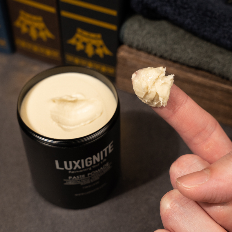 把香味和髮油分開,是想避免因香精因汗水接觸頭皮過敏或發炎,因此Luxignite 把香水膏(Solid Cologne)設計在蓋子上,讓用家在頭髮造型後再把香味塗在耳背或手腕上。加上水性配方,容易清洗,不會把髮蠟殘留在頭髮和頭皮上