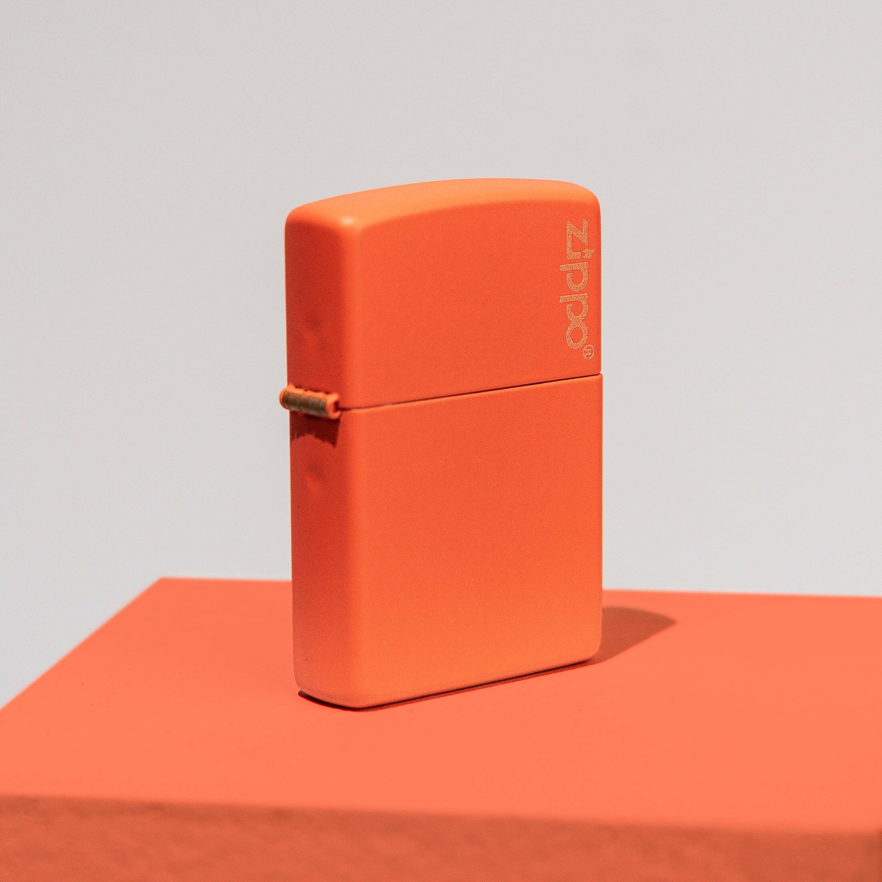 This orange matte windproof lighter is adorned with the classic Zippo logo. Comes packaged in a gift box. For optimal performance, fill with Zippo lighter fuel.