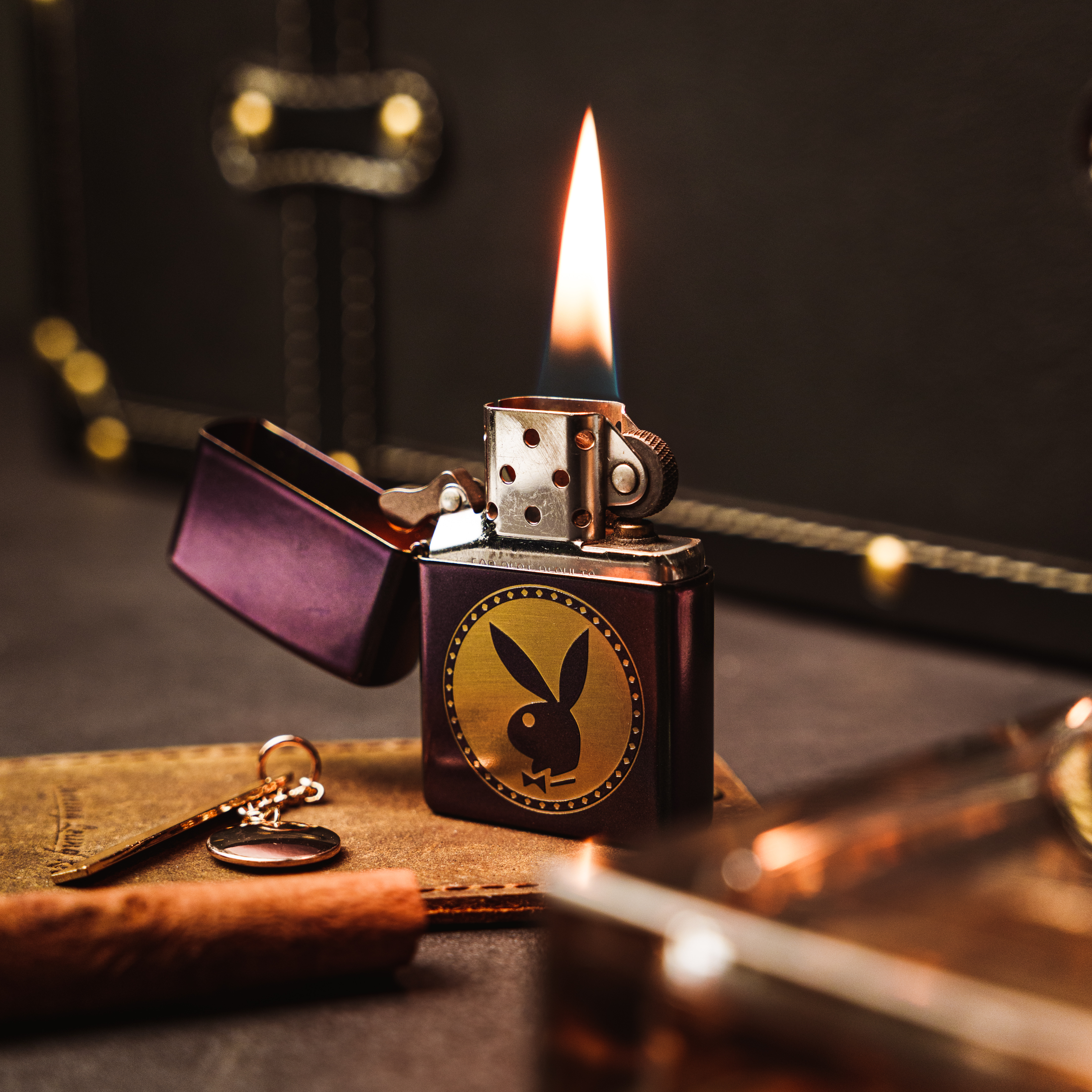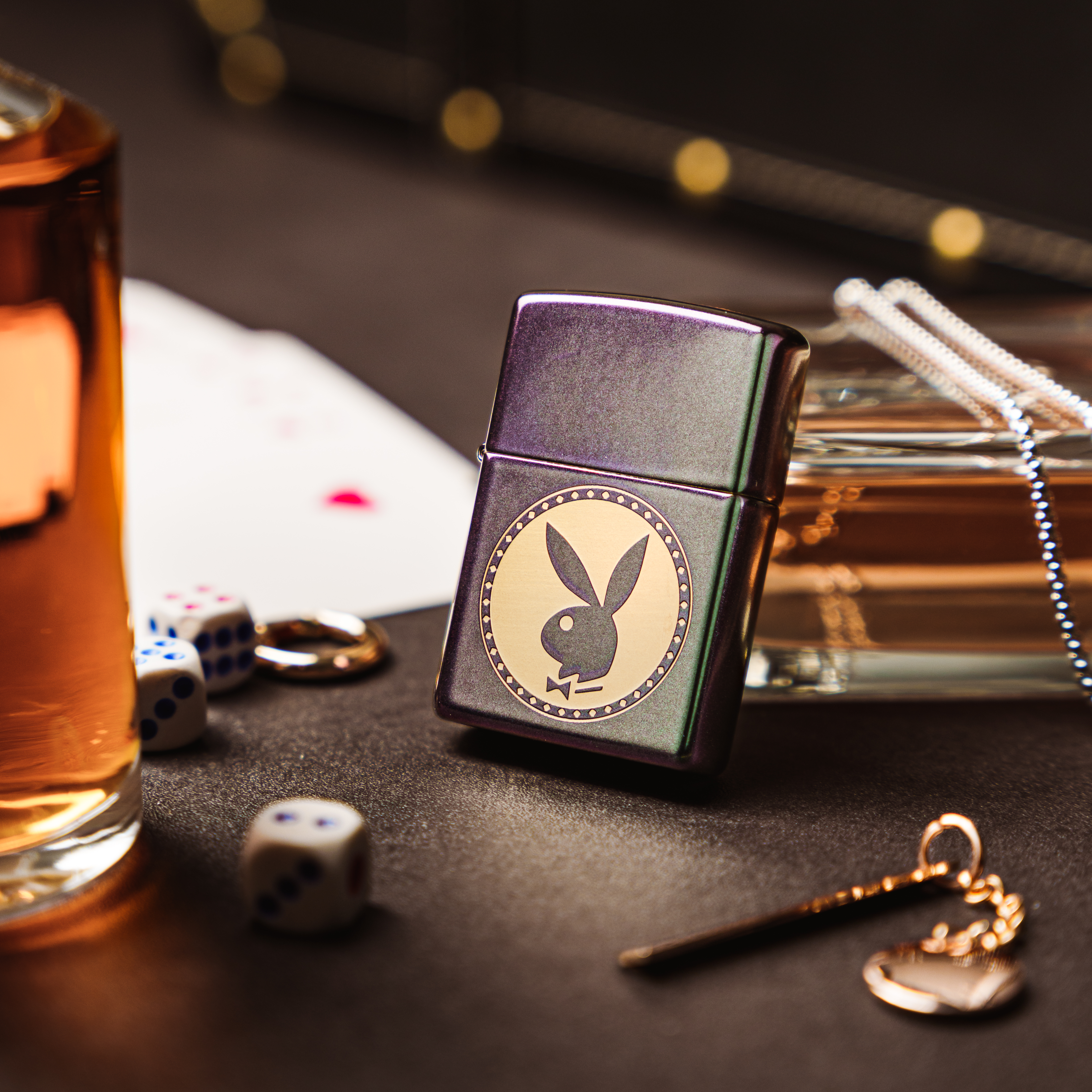 Zippo Lighter Playboy Logo 打火機 48380 Playboy's iconic Rabbit Head Design looks especially dapper on this Iridescent lighter thanks to the luxurious metallic tones revealed by our Laser Engrave process. Comes packaged in a gift box. For optimal performance fill with Zippo lighter fuel.