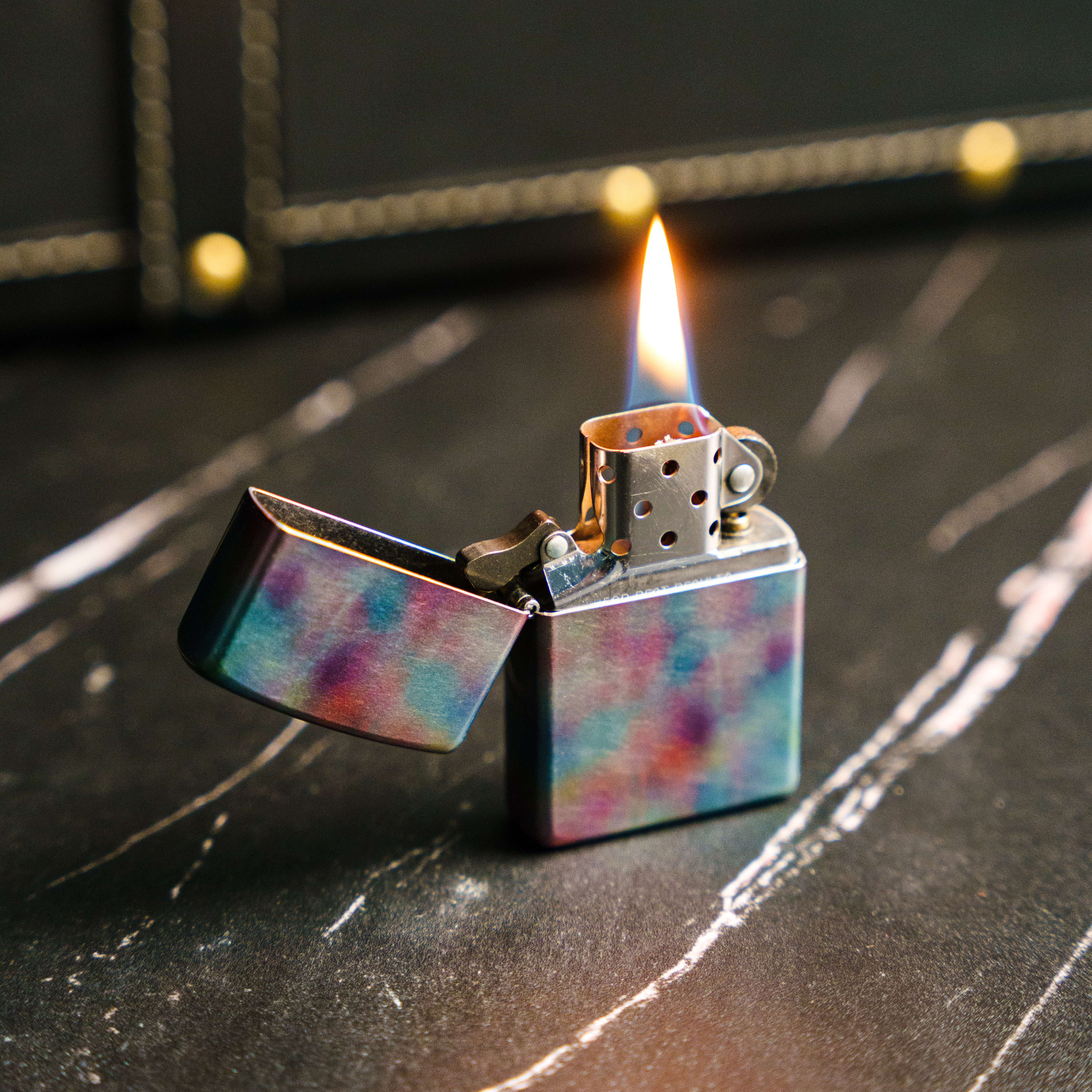 Zippo Lighter 540 環繞彩色圖案 打火機 48511 Introducing 540 Fusion: a totally new evolution of two of our most sought-after imprint methods. Shimmering metallic elements and sleek, translucent color palettes – the hallmark of our Fusion process – join forces with our proprietary 540 Color technology to envelop the lighter on all sides for a seamless, iridescent and absolutely stunning end result. The smooth colors on this model merge and mingle to create a mesmerizing holographic effect. Comes packaged in a gift box. For optimal performance fill with Zippo lighter fuel.