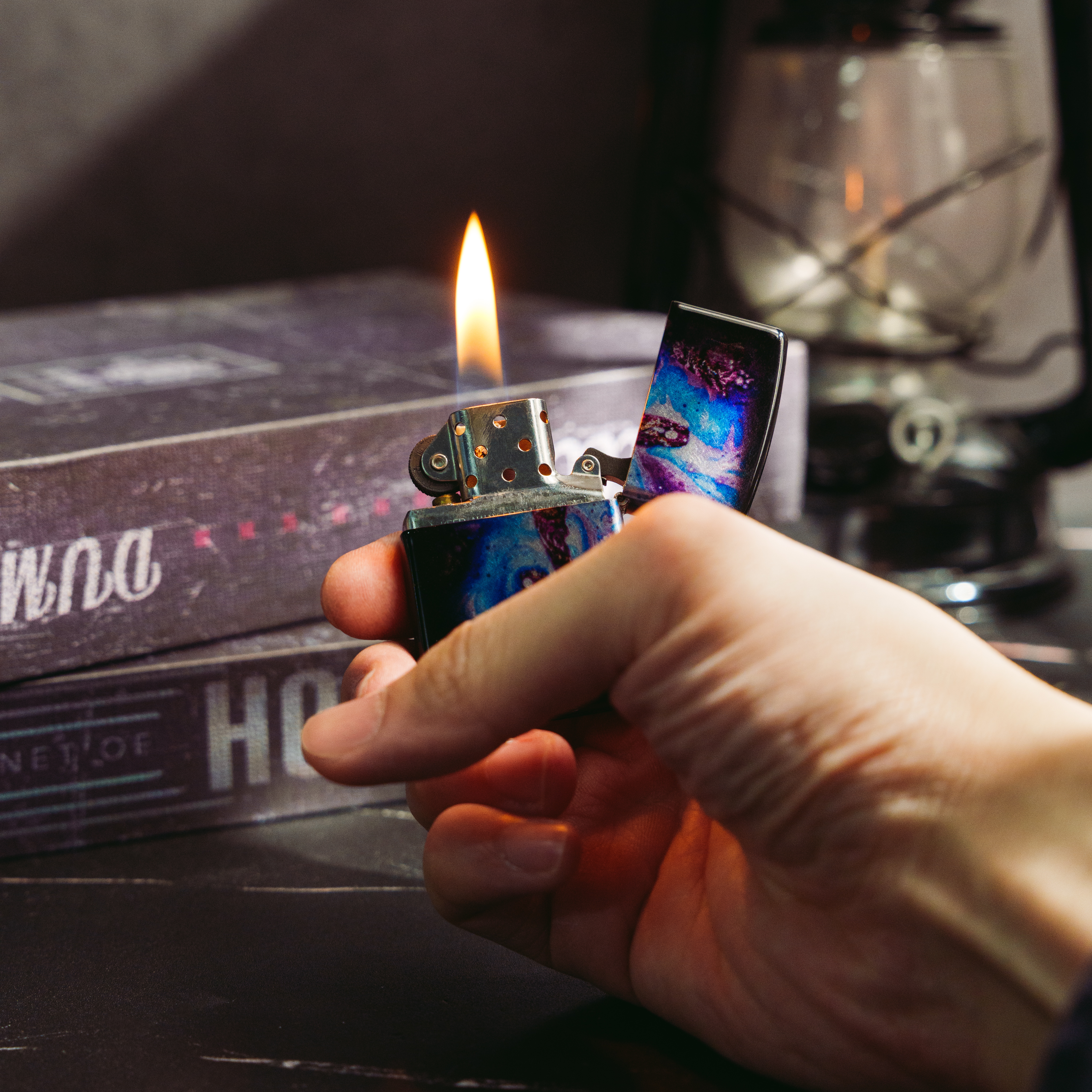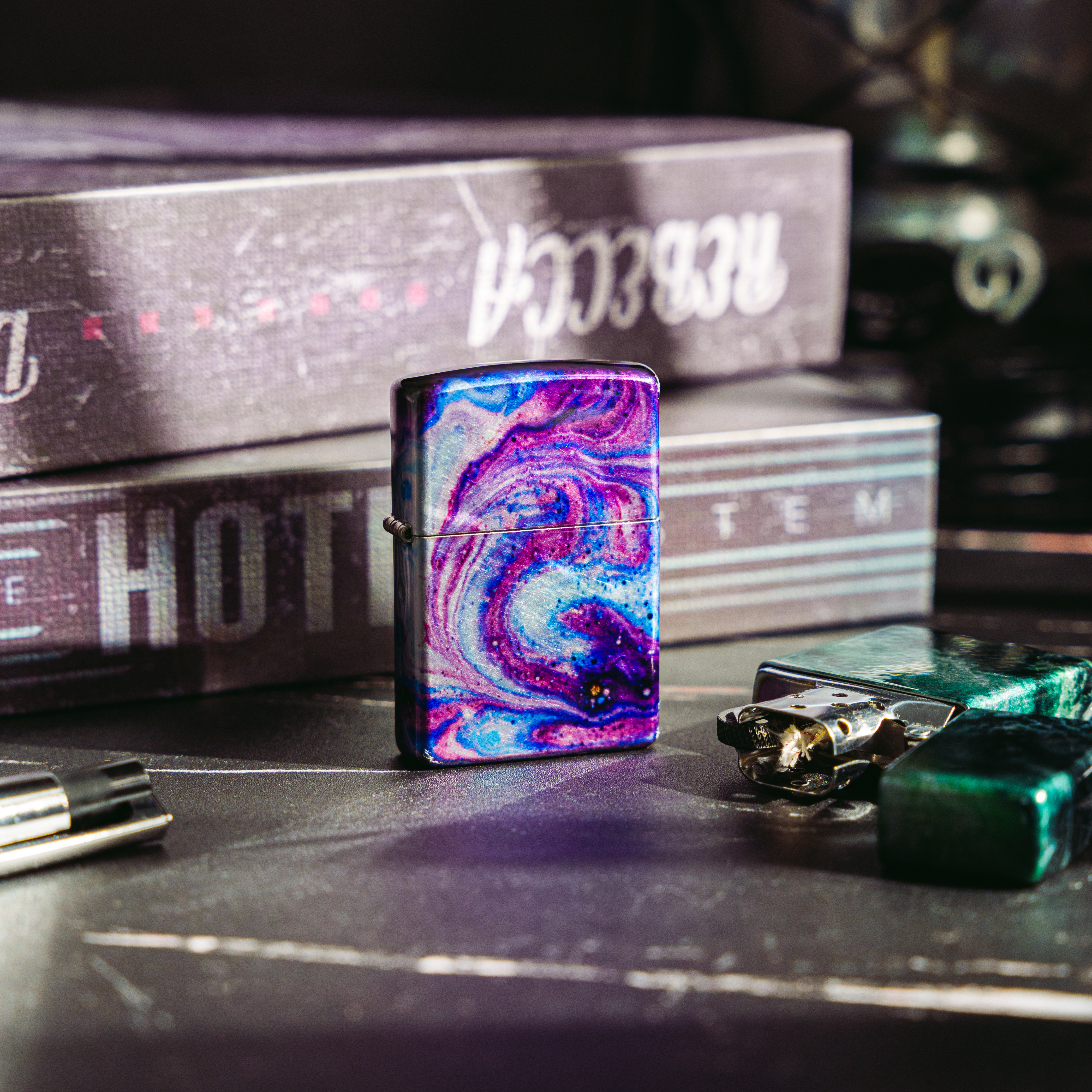 We unveiled 540 Fusion last autumn, and we’re just getting started! A dazzling cosmic scene swirls around all sides of this lighter and is complemented with iridescent metallic tones, combining the hallmarks of both our 540 Color and Fusion processes. Comes packaged in a gift box. For optimal performance, fill with Zippo lighter fuel.