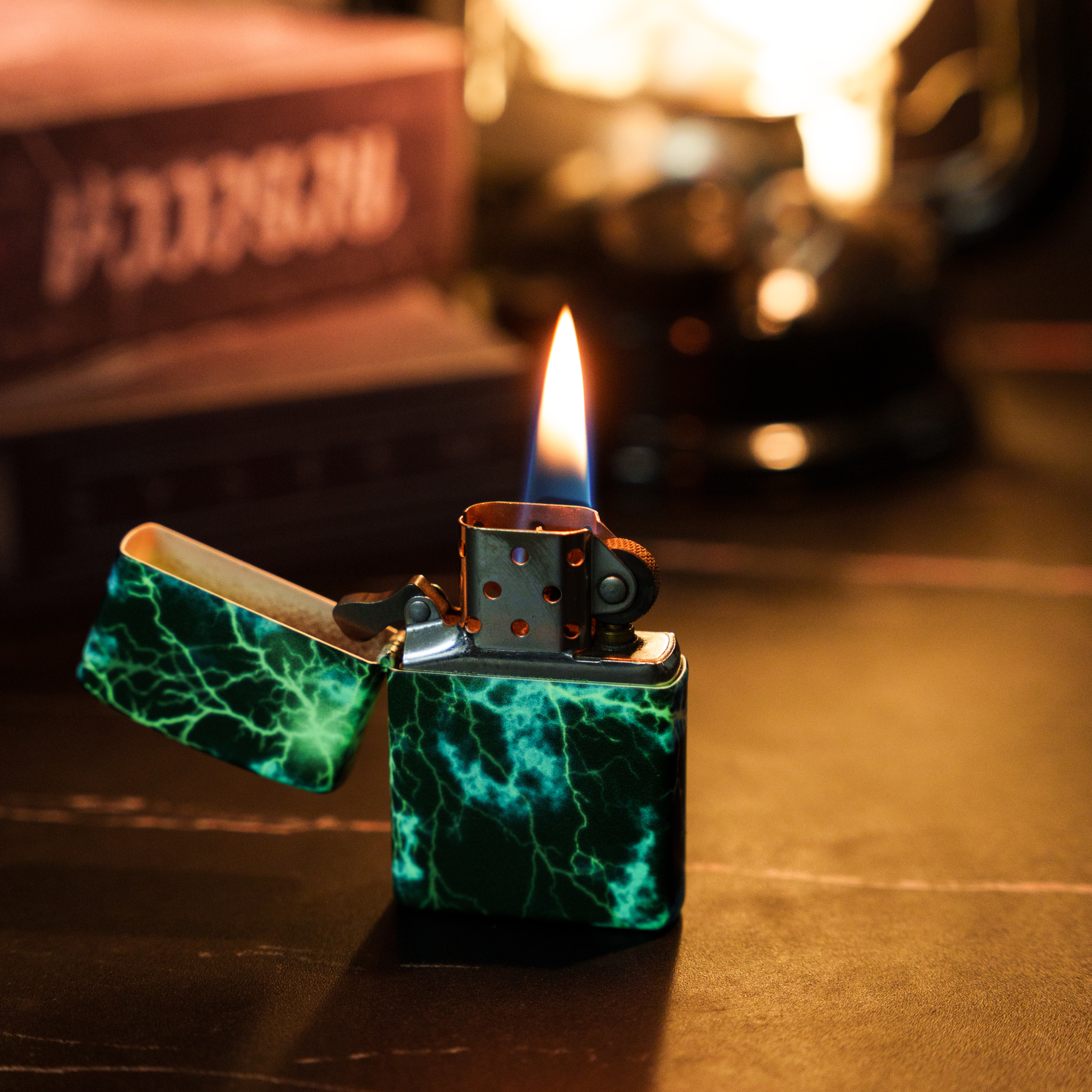A thunderstorm rages on every side of this captivating 540 Color lighter. An intricate network of lightning streaks across each surface and shines even brighter at night thanks to our Glow-in-the-Dark finish. Comes packaged in a gift box. For optimal performance, fill with Zippo lighter fuel.