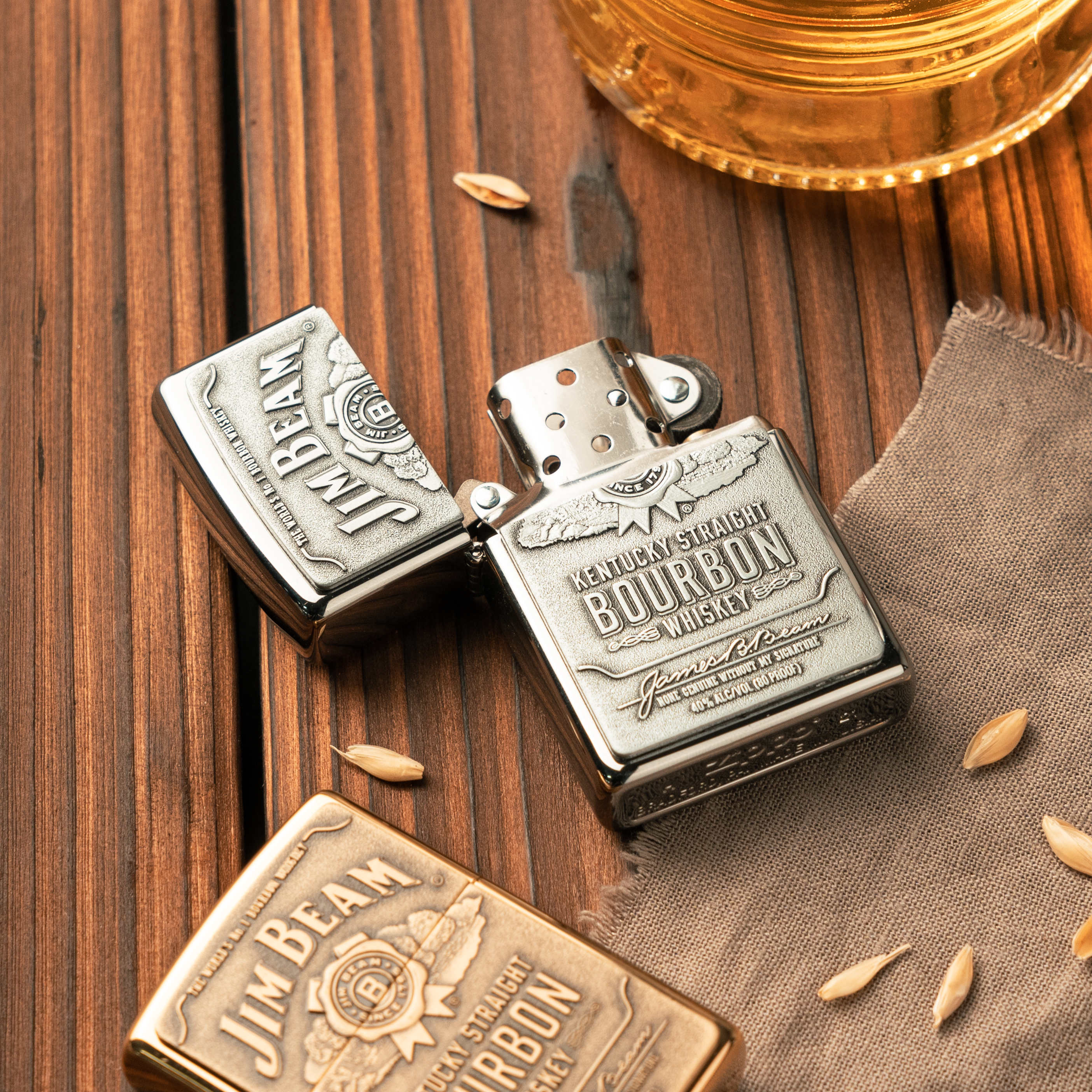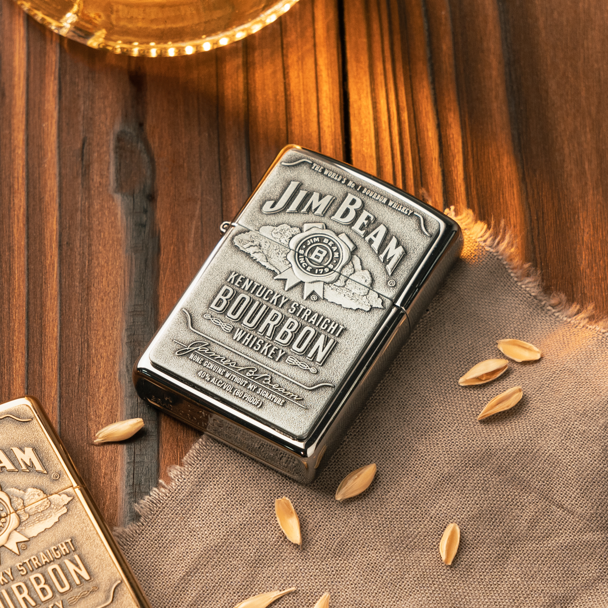 Zippo Lighter Jim Beam® 打火機 250JB.928 This High Polish Chrome windproof lighter has a Jim Beam® emblem attached to it.