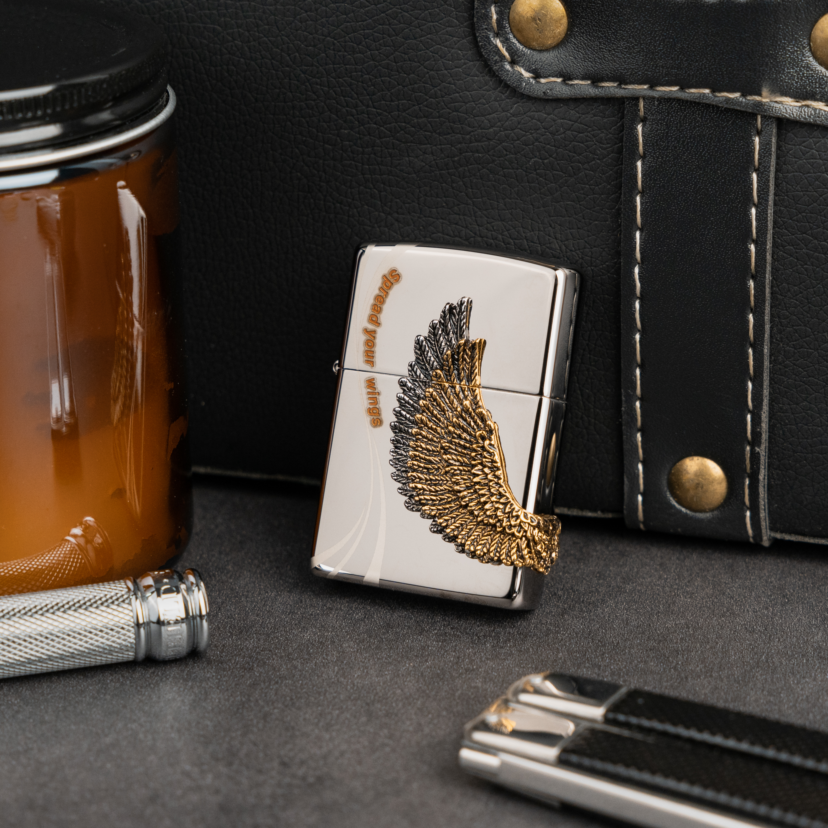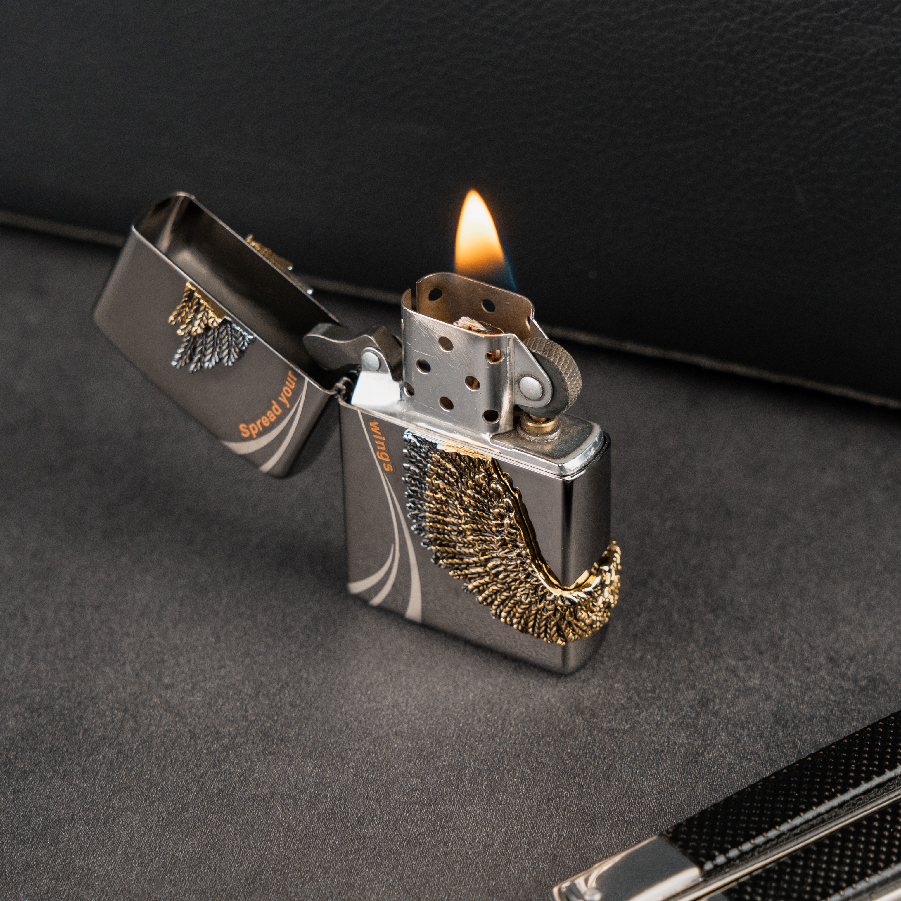 Zippo 韓版 立體雙翼 Double Wing 打火機 ZA-1-97A 黑冰色火機機身, 配以雙面立體雙翼