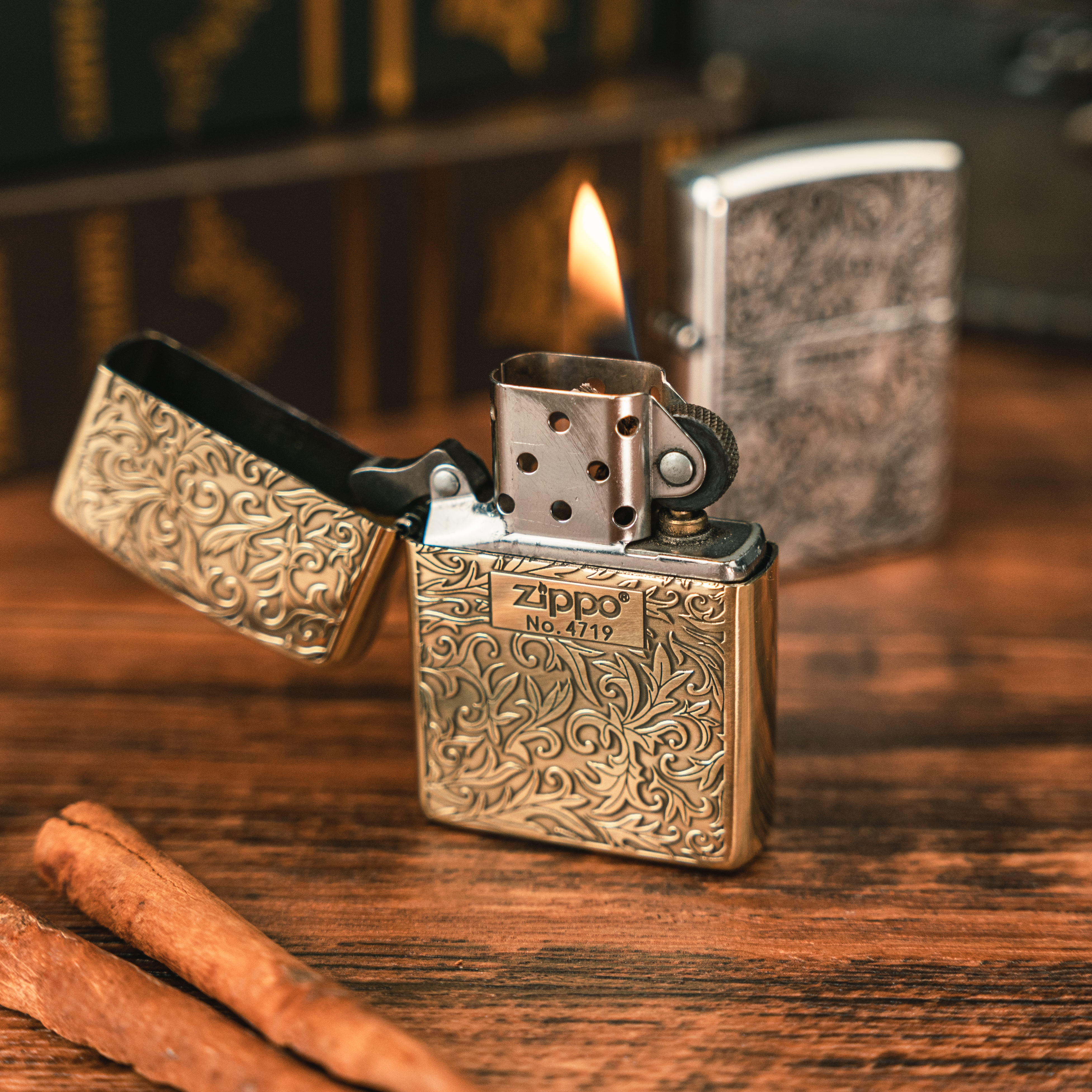 Zippo 金色火機機身, 配以雙面加工唐草圖案