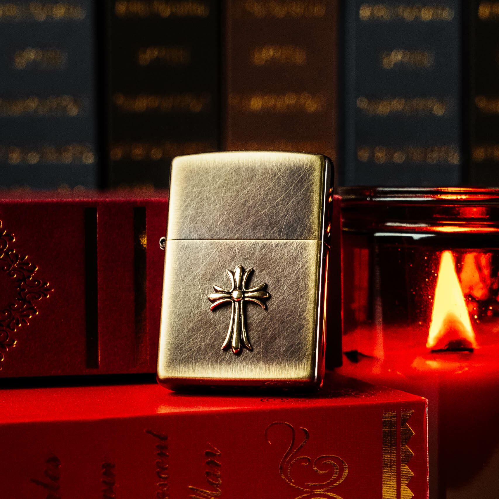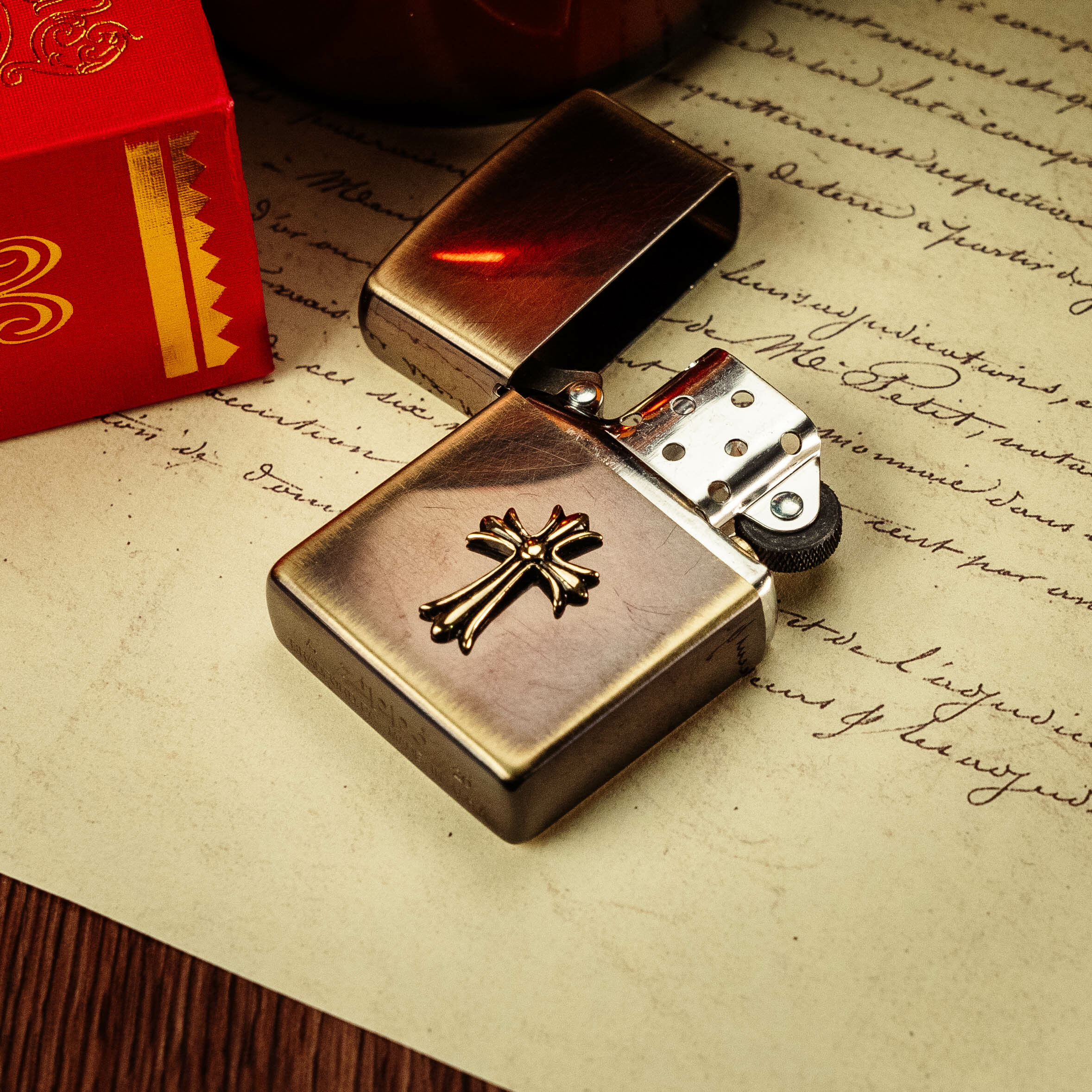 Zippo 復古銅色外殼火機加以立體十字架