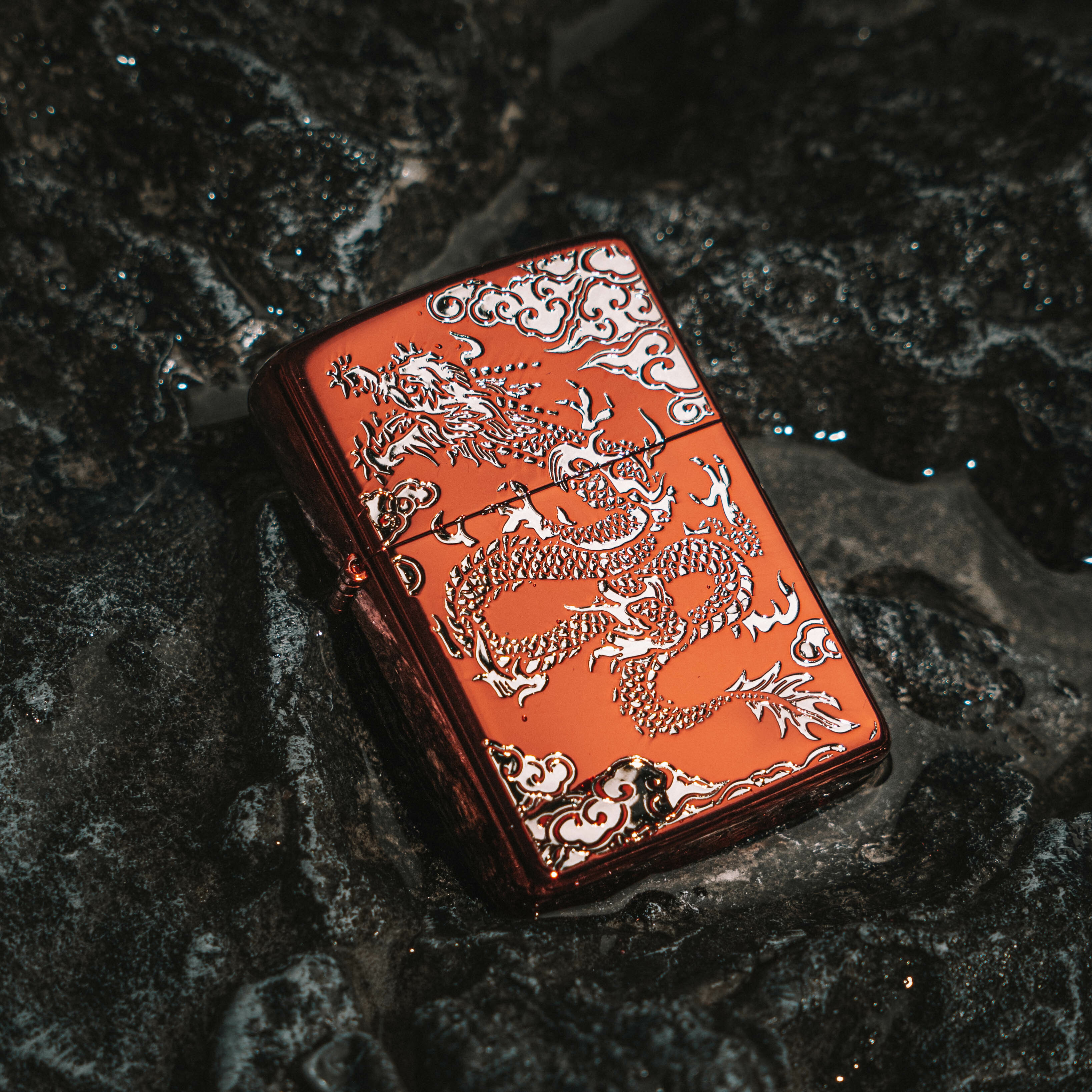 Zippo 日版 電鍍紅色銀飛龍 打火機 ZBT-3-35b